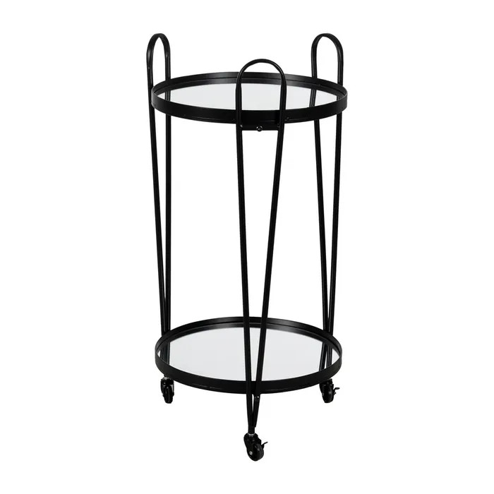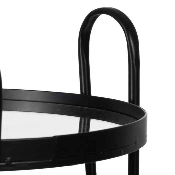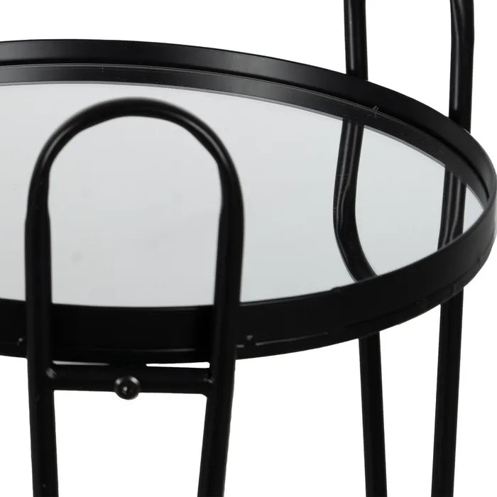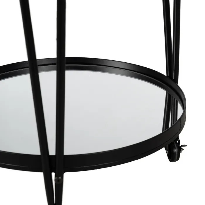Con su diseño redondo y estructura metálica en negro, esta camarera decorativa aporta un aire sofisticado y moderno a cualquier rincón. Los sobres de espejo reflejan la luz y elevan la presentación de tus bebidas o accesorios favoritos, creando un efecto visual elegante y contemporáneo.