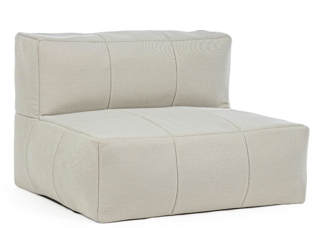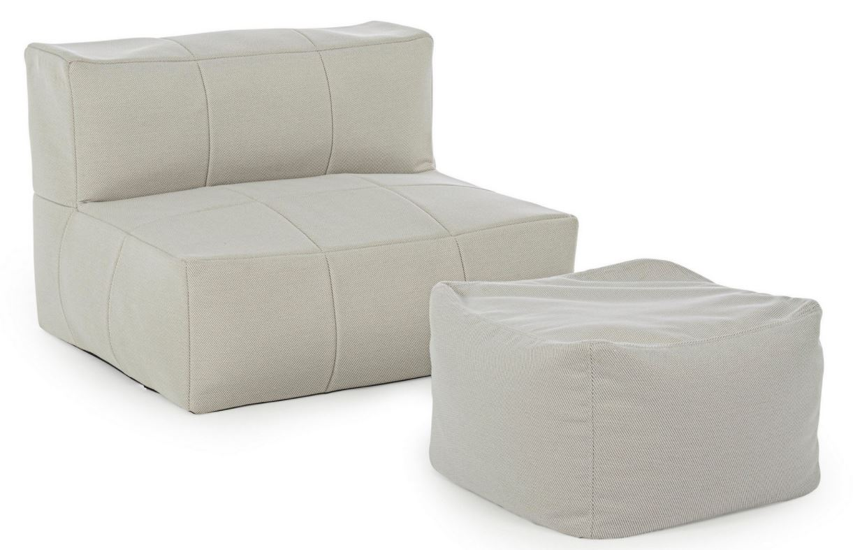 Estructura de aluminio. Revestimiento desenfundable en tejido olefin (100% polipropileno), hidrorepelente y resistente a los rayos uv (grado 7). Mullido de poliestireno expandido (eps) con la añadidura de quick dry foam en el asiento.