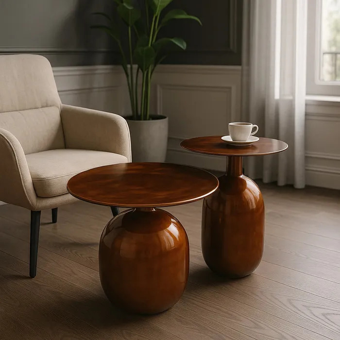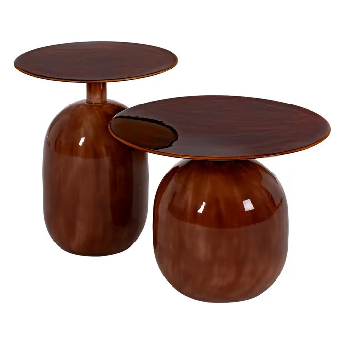 Este set de dos mesitas con volúmenes redondeados y estructura de hierro esmaltado es la combinación perfecta entre modernidad y originalidad. Sus formas suaves y acabados elegantes las convierten en el complemento ideal para cualquier rincón del hogar.