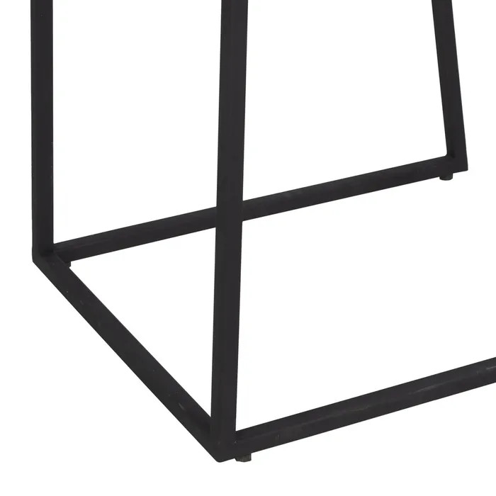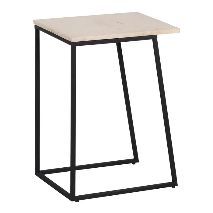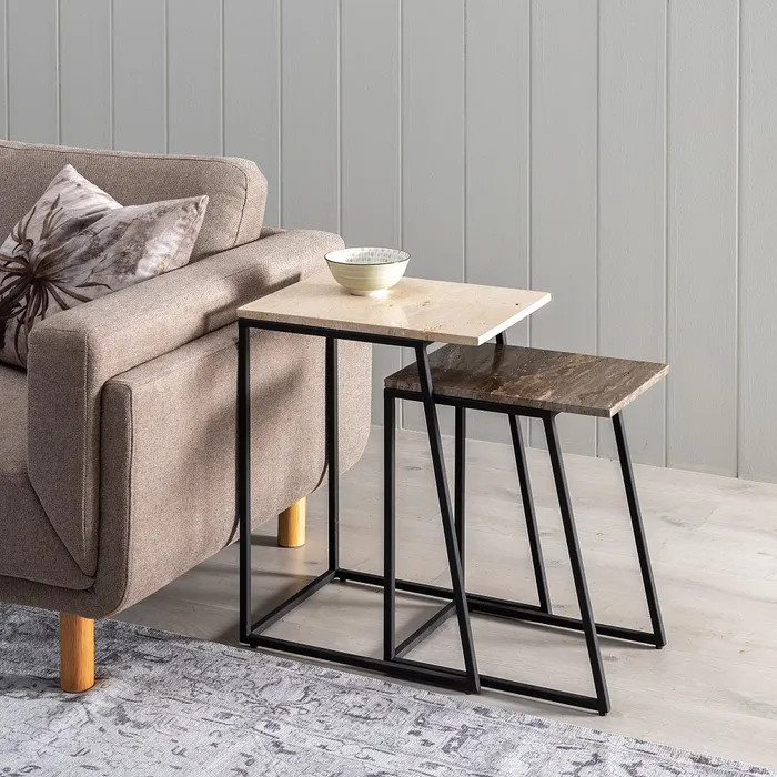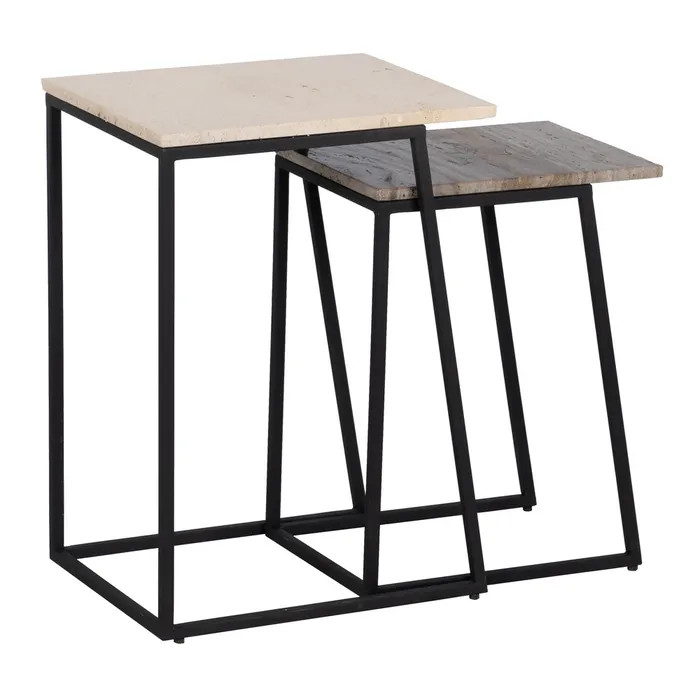 ¿Buscas el equilibrio perfecto entre diseño sofisticado y funcionalidad? Este set de dos mesitas con sobre de mármol travertino rectangular y patas de hierro en color negro es justo lo que tu hogar necesita.