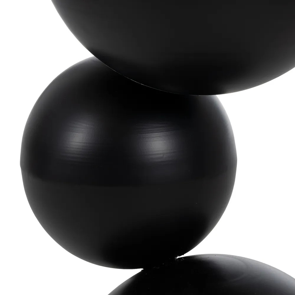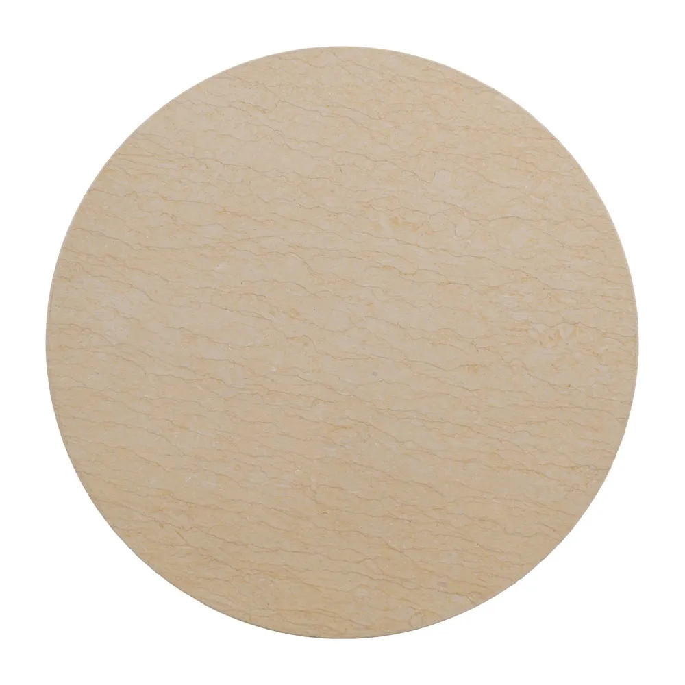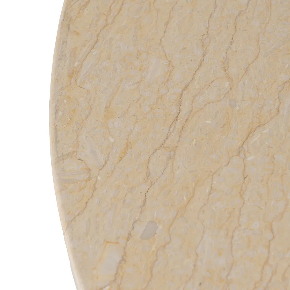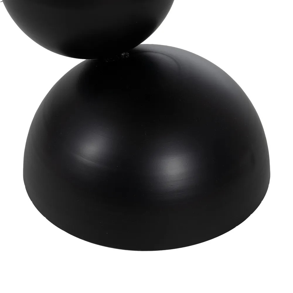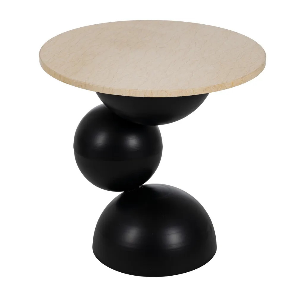 Haz que tu espacio respire arte con esta mesa auxiliar original, cuya silueta escultural rompe con lo convencional. Su pie redondeado formado por esferas en hierro crea un juego visual único, mientras la base de mármol beige aporta elegancia y naturalidad.