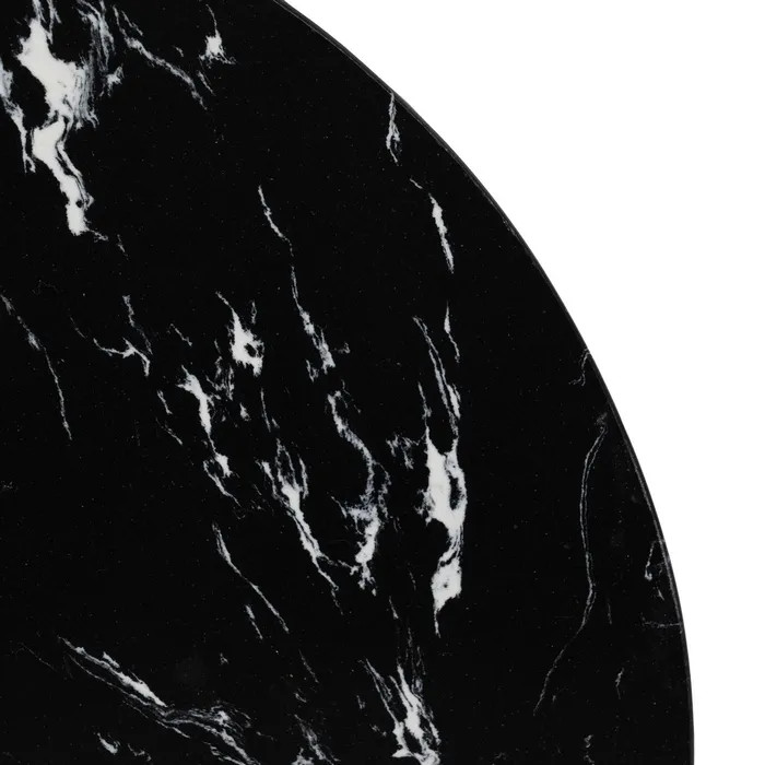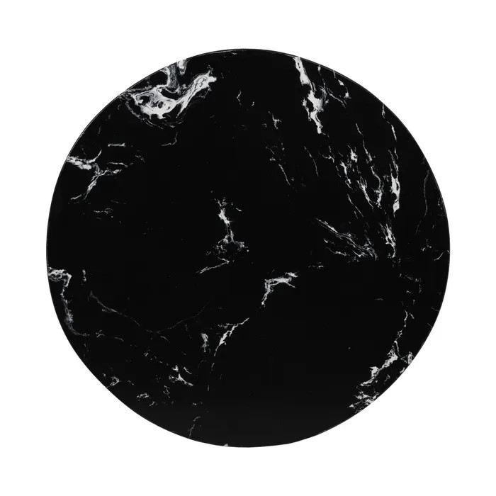 - Sobre redondo de mármol negro: clásico y refinado, con vetas únicas
