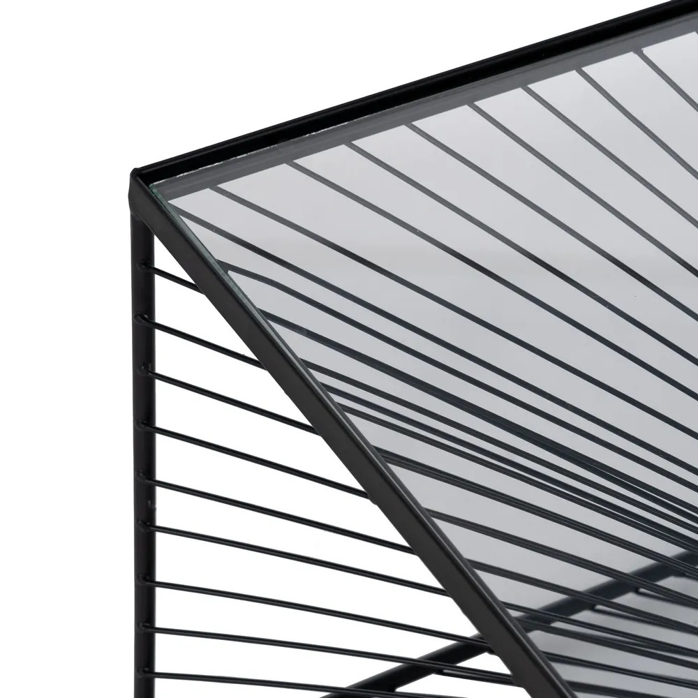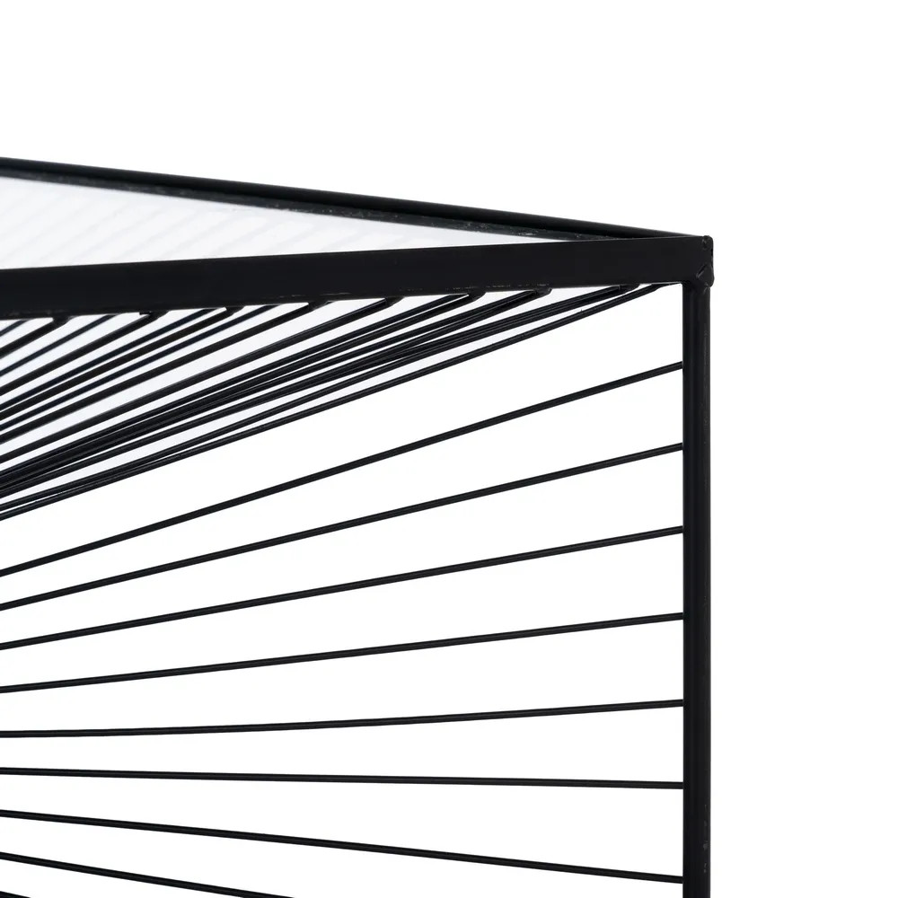 Esta mesa de centro no es solo funcional, es una pieza con carácter. Con su estructura de varillas de metal negro y sobre de cristal, crea un contraste elegante y ligero que eleva cualquier espacio.
