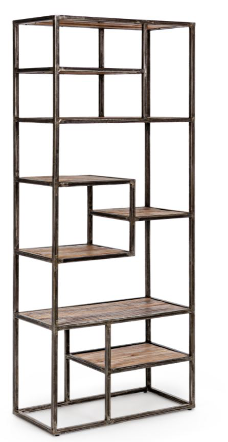 Estructura de hierro, estantes de madera de acacia. Acabado acrílico protector.