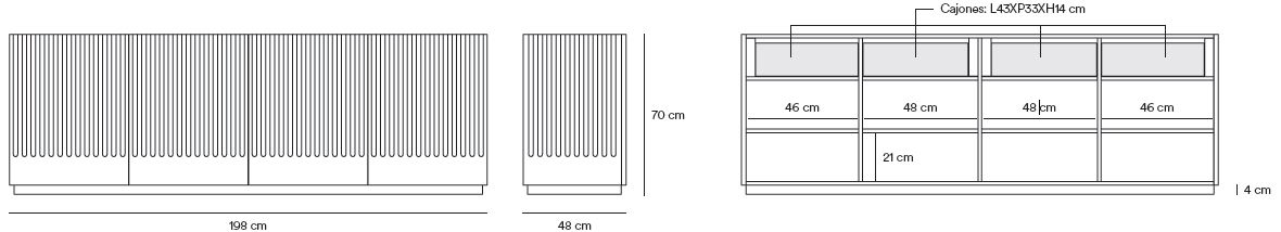 Compuesto de 4 puertas con 4 cajones interiores. La colección DORIC está inspirada en los órdenes arquitectónicos de la Grecia clásica. Sus surcos verticales reflejan la sencillez y la robustez característica de este periodo, buscando la belleza y proporcionalidad de los preceptos clásicos de arquitectura. REQUIERE MONTAJE.