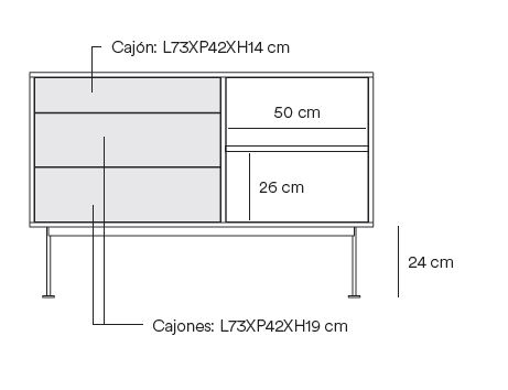 Aparador 128x45x81 cms YOKO Roble/Crema 1puerta 3cajones