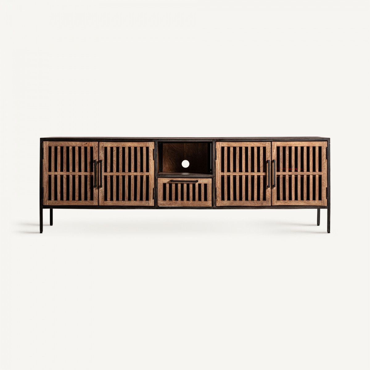 MUEBLE T.V. RECTANGULAR SURAT, EN COLOR MIEL ENVEJECIDO, DE ESTILO INDUSTRIAL. FABRICADO EN MADERA DE MANGO.