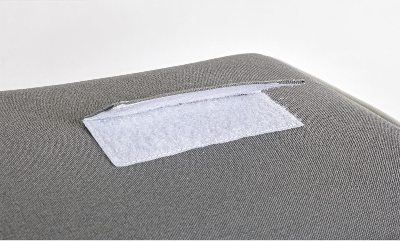 Tejido en spun poliéster 200 gr / m2, desenfundable con cremallera disimulada. Con doble borde. Hidrorepelente. Resistente a los uv iso 7.0. Base de tela de poliéster oxford 250gr / m2 revestimiento interior de pvc. Hinchable.