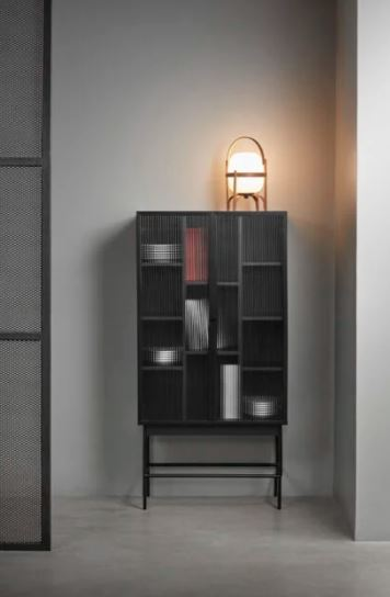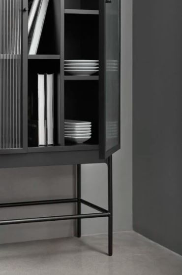 La combinación del cristal con los marcos metálicos y la chapa de roble dán como resultado un mueble elegante y con estilo propio.