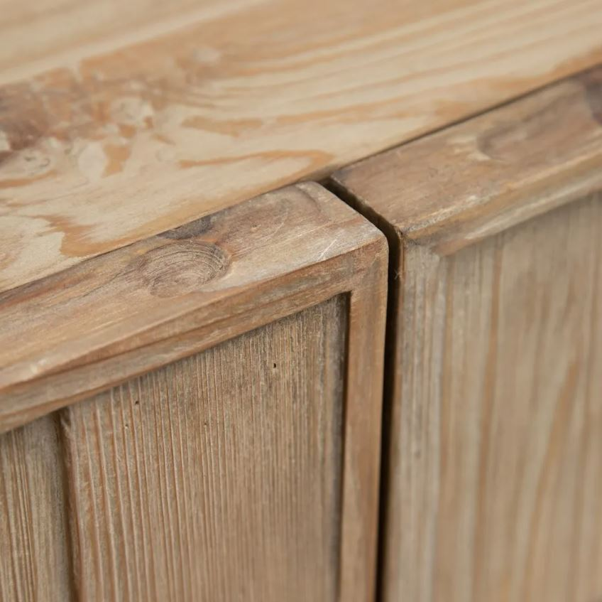MATERIALES: MADERA RECICLADA DE ABETO Y HIERRO. ALTURA PATAS: 20 CM 4 PUERTAS DE 44,5 X 64 CM. INCLUYE 1 BALDA INTERIOR.