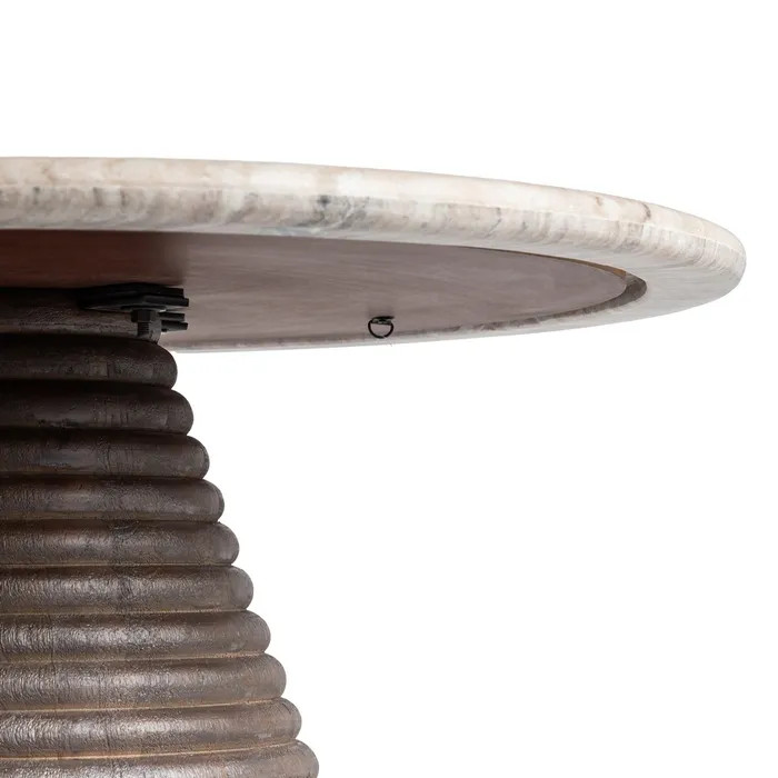 Imagina un espacio donde el diseño y la elegancia se encuentran en perfecta armonía. Esta mesa de centro es más que un mueble: es una pieza artística que aporta carácter y sofisticación a cualquier ambiente. Su base, esculpida en madera de mango con delicadas ondas, crea un efecto visual dinámico y acogedor. Sobre ella, un refinado sobre de mármol, con sus variaciones naturales, hace de cada mesa una obra única e irrepetible.
