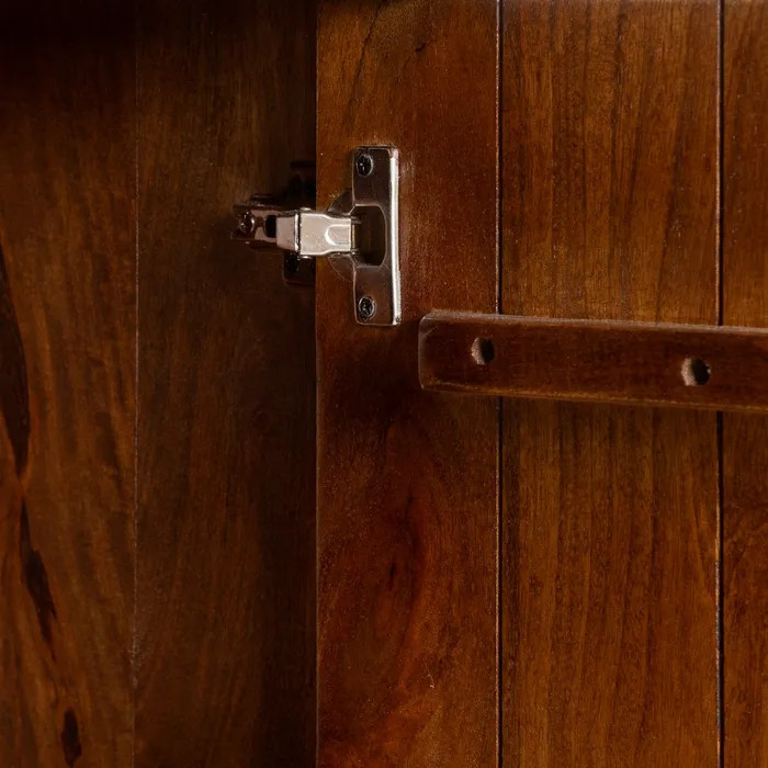 Descubre este mueble auxiliar de madera de mango, una joya artesanal con presencia y encanto que transforma cualquier espacio. Su cálido tono marrón y vetas únicas aportan personalidad y elegancia rústica, mientras que sus puertas de 38x76cm y amplios huecos de 76,5x38cm ofrecen organización sin renunciar al diseño.