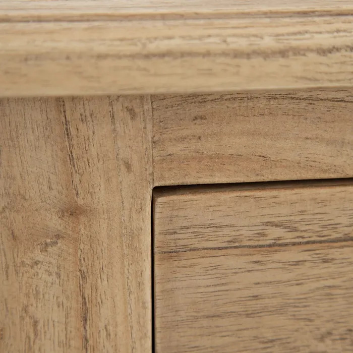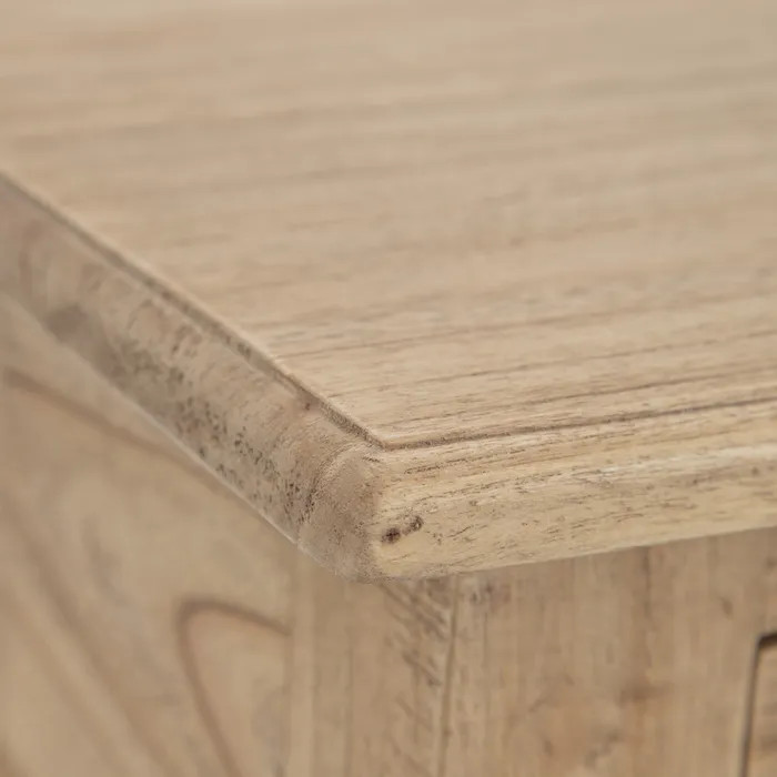 Mesita de noche de madera natural de Mindi – funcionalidad con encanto