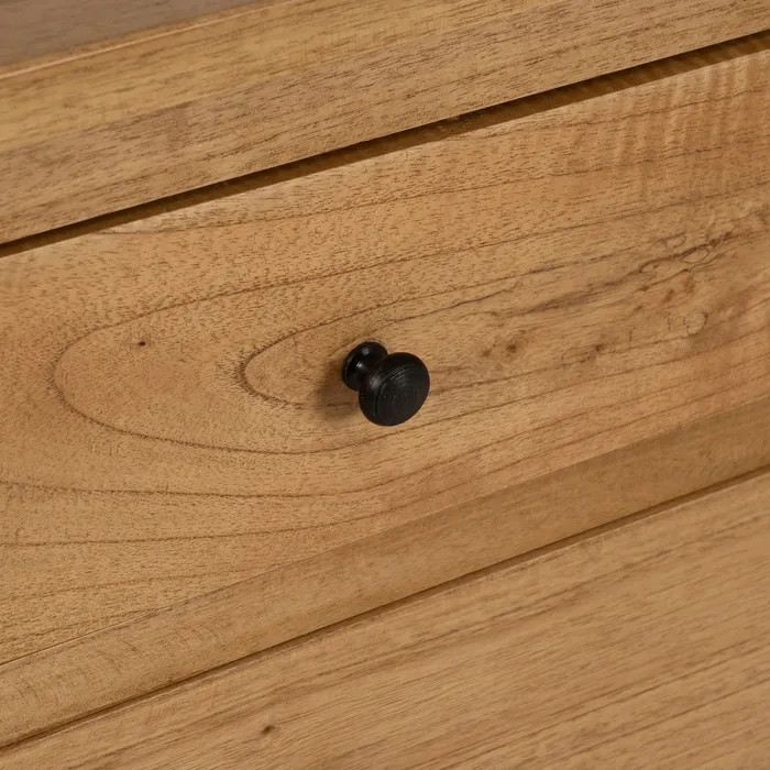 - Madera de mindi con vetas naturales que aportan calidez y autenticidad