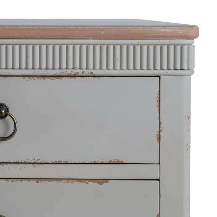 Sus dimensiones de 50 x 38 x 72 cm la hacen práctica y perfecta como mesa auxiliar, mesita de noche o punto de apoyo en salones y recibidores. El cajón de 40 x 11 cm permite guardar objetos personales de forma discreta, manteniendo todo en orden sin perder accesibilidad. Las patas de 19 cm aportan estabilidad y un diseño ligero que eleva el conjunto con elegancia.