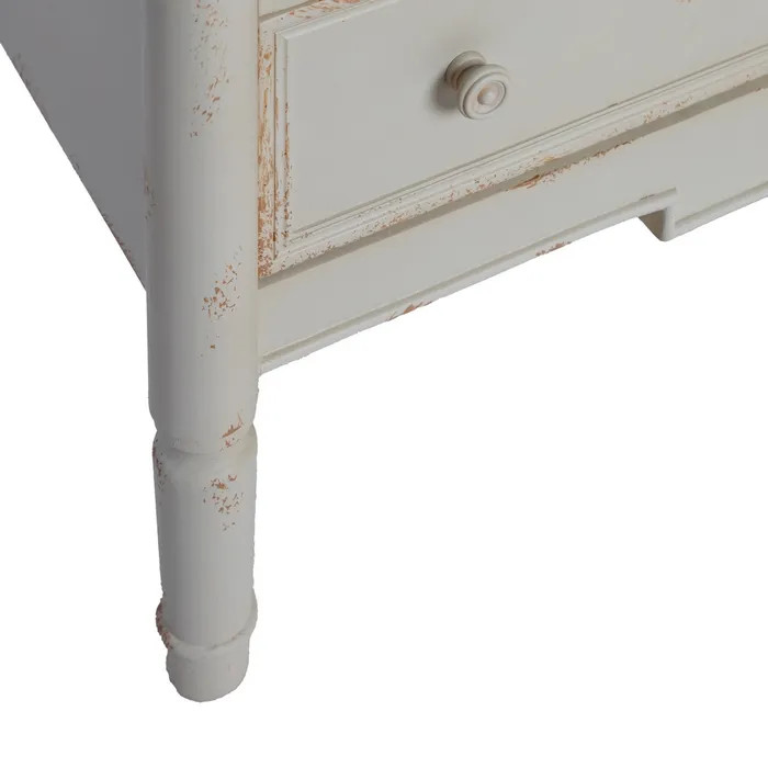 Sus dimensiones de 80 x 45 x 60 cm lo hacen compacto pero práctico. Incorpora cajones de 66 x 15,5 cm, para mantener el orden con discreción y elegancia. Las patas elevadas de 18 cm no solo estilizan el diseño, sino que también facilitan la limpieza y añaden un toque ligero al conjunto.