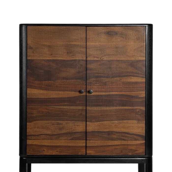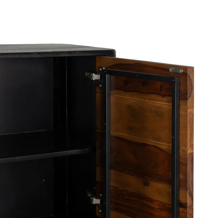 Añade carácter y distinción a tu salón con este armario de líneas sobrias y elegantes, acabado en tonos marrón y negro. Fabricado en madera de mango y sheesham, destaca por su resistencia natural y vetas únicas que aportan calidez y personalidad al espacio. Con unas dimensiones de 90 x 40 x 150 cm, es ideal para mantener el orden sin renunciar al estilo.