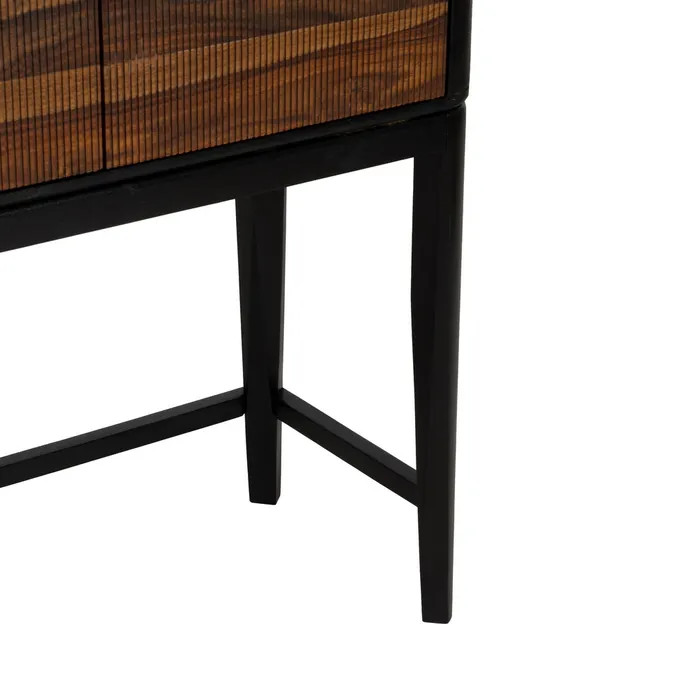 Sus puertas de 39 x 87 cm ocultan un interior espacioso, perfecto para guardar desde textiles hasta objetos decorativos. Las patas, con alturas de 12 y 56 cm, elevan el diseño y le dan un aire ligero y moderno. Este armario es más que un mueble: es una declaración de buen gusto.