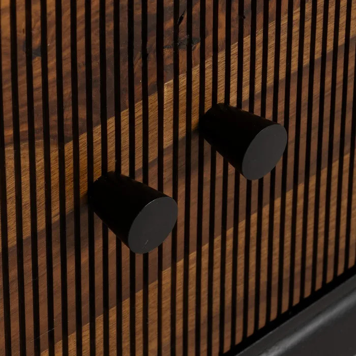 Este mueble de TV en tonos marrón y negro es la elección perfecta para quienes valoran la elegancia discreta y el diseño funcional. Fabricado en madera de mango y sheesham, combina la solidez de los materiales nobles con una estética refinada que aporta carácter al salón sin sobrecargar el ambiente.