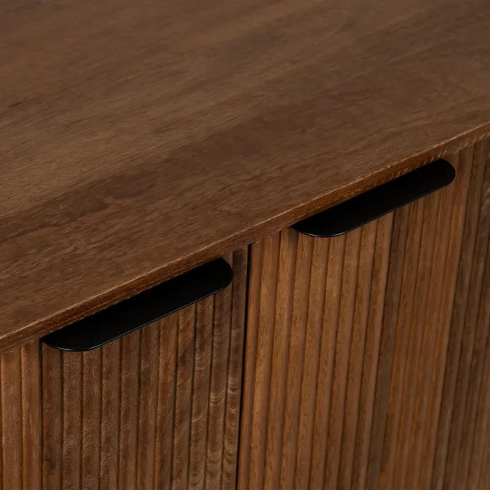 Transforma tu salón con un aparador que combina carácter y elegancia. Fabricado en madera de mango natural y hierro, esta pieza de 160 x 40 x 78 cm aporta calidez, resistencia y estilo industrial a cualquier espacio. Sus puertas de 52,5 x 55 cm ofrecen amplio almacenamiento, mientras que sus patas de 18 cm elevan el diseño y facilitan la limpieza. Ideal para quienes buscan funcionalidad sin renunciar al diseño. Cada detalle está pensado para destacar.