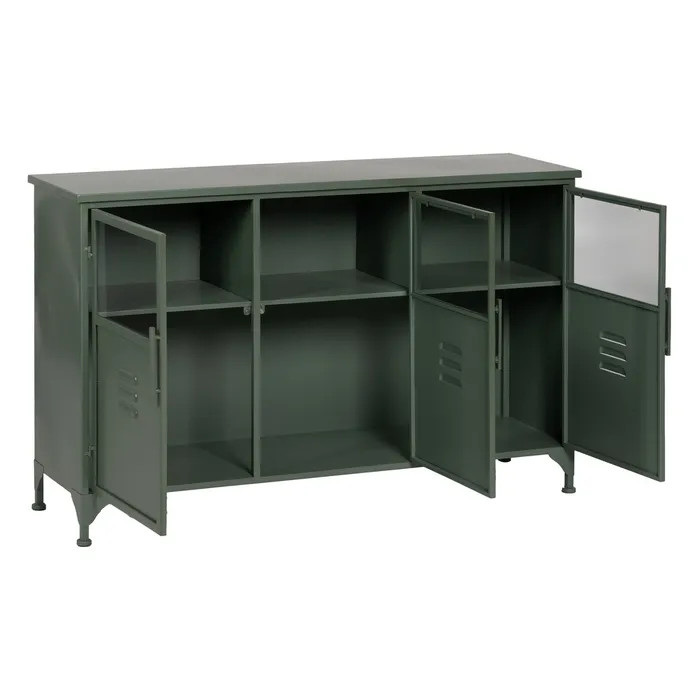 Dale un toque fresco y moderno a tu espacio con este aparador en verde menta, una pieza que combina la solidez del hierro con la elegancia del cristal. Su diseño limpio y funcional lo convierte en el aliado perfecto para salones, comedores o recibidores que buscan estilo sin renunciar a la practicidad.
