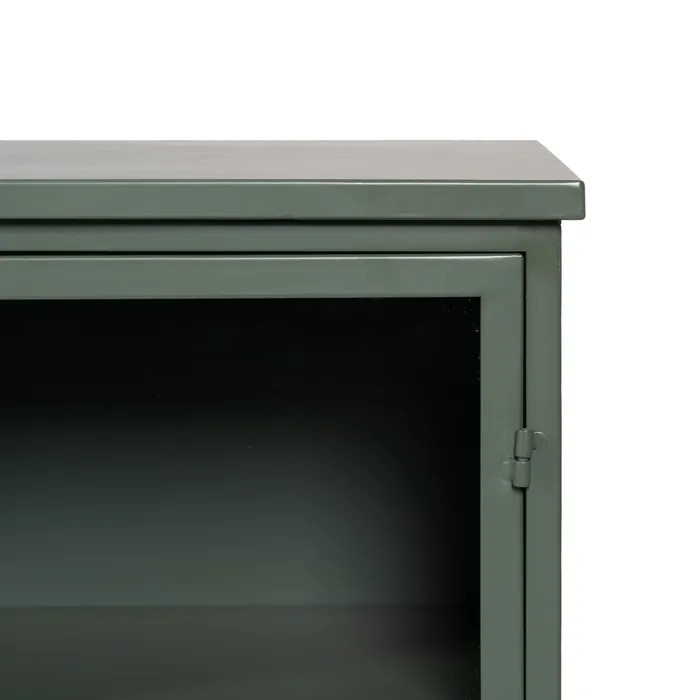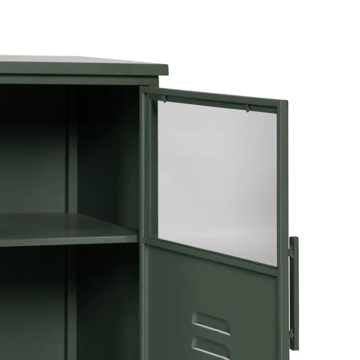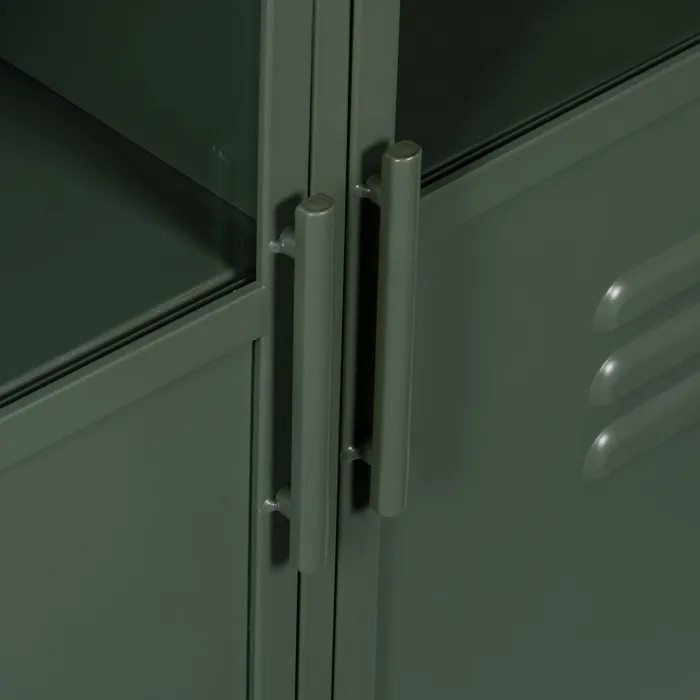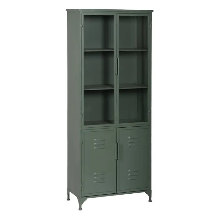 Transforma cualquier rincón de tu hogar con esta vitrina en verde menta, una pieza que combina la resistencia del metal con la ligereza del cristal para ofrecerte estilo y funcionalidad. Su diseño vertical de 72 x 35 x 178 cm es ideal para ambientes que buscan frescura y orden.