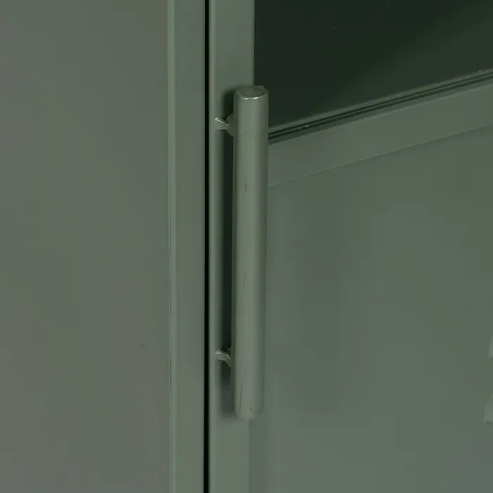 Este mueble auxiliar en verde menta es la pieza ideal para añadir un toque de frescura y funcionalidad a tu hogar. Su estructura de hierro y cristal combina resistencia con ligereza visual, creando un diseño versátil que se adapta a cualquier estilo decorativo.