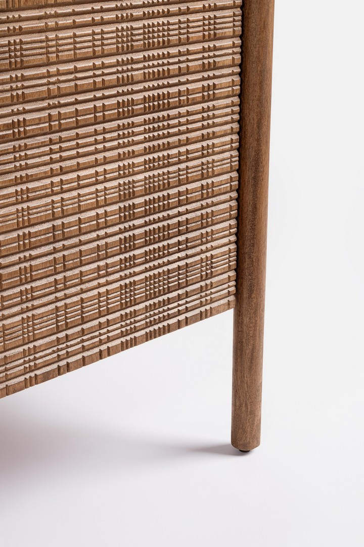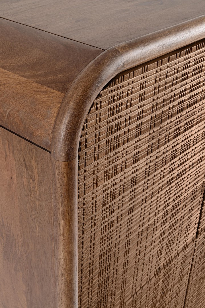 Este aparador alto de cuatro puertas es una pieza que combina elegancia, funcionalidad y tradición artesanal. Su estructura de madera de mango aporta solidez y una belleza natural que transforma cualquier espacio. El respaldo de DM refuerza su estabilidad, mientras que el frente de las puertas, decorado con taraceas hechas a mano, añade un toque único y artístico. El acabado con barniz a base de agua realza los detalles sin comprometer el medio ambiente. En su interior, cada compartimiento con estante ofrece espacio práctico para organizar con estilo. Ideal para salones, comedores o recibidores con personalidad propia.