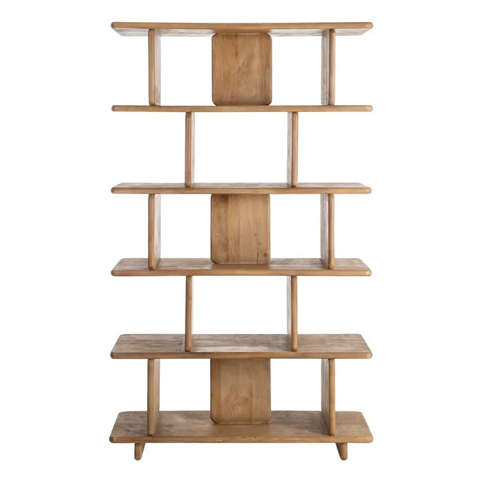 Una estantería de madera de mango que aporta calidez y un estilo natural a tu salón. Con unas medidas de 106 x 35,5 x 175 cm, ofrece una presencia elegante sin recargar el espacio. Su estructura sólida y el acabado en madera maciza la convierten en una pieza duradera y llena de carácter. Perfecta para exhibir libros, decoración o plantas, combina funcionalidad y diseño en un mueble que transforma cualquier ambiente con un toque acogedor y auténtico.