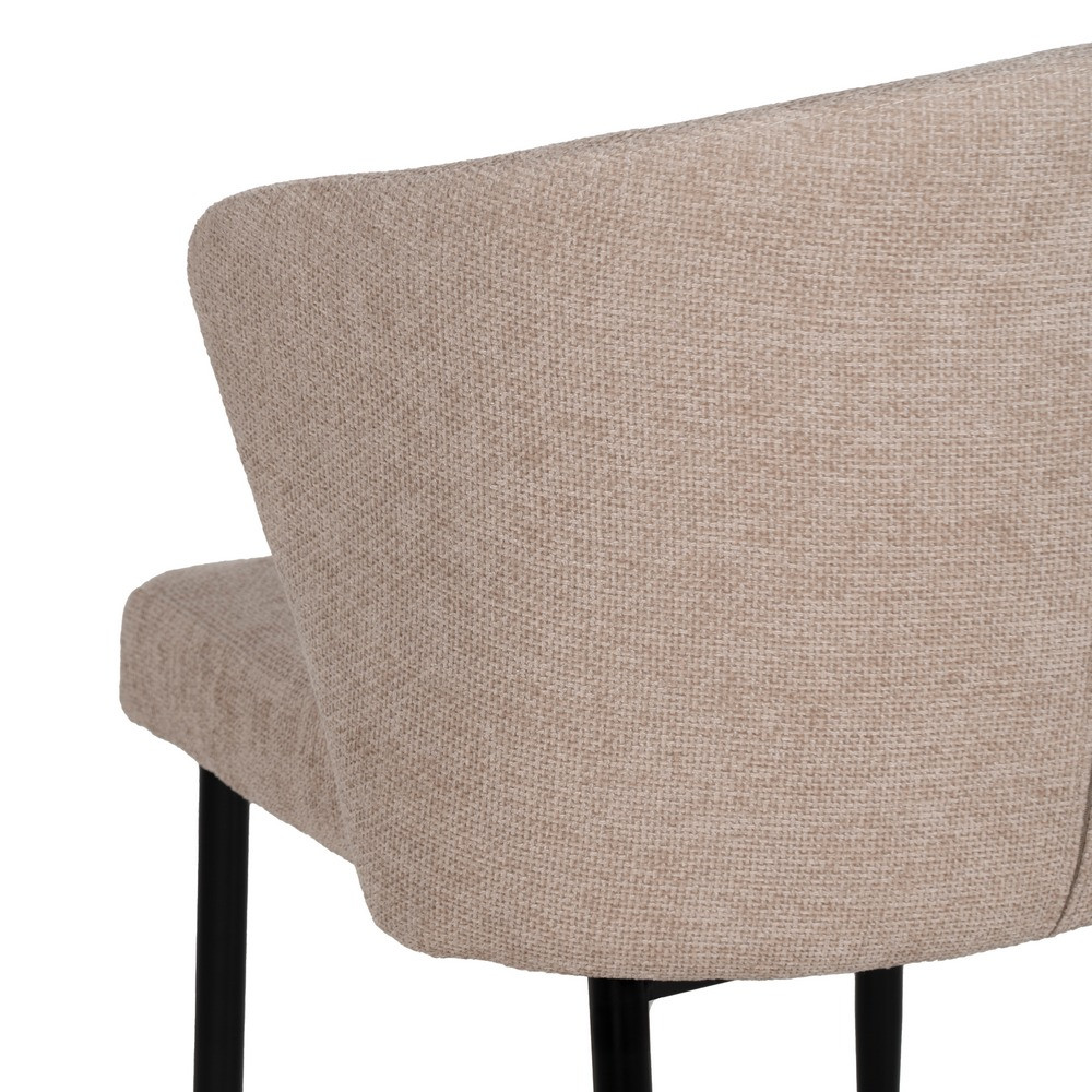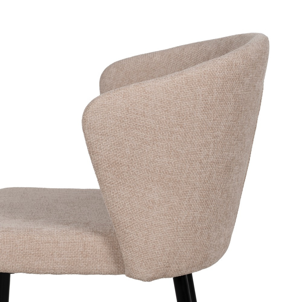 Con su respaldo curvo y envolvente, esta silla no solo aporta estilo, sino también comodidad. El tapizado en tela mostaza con textura cálida y vibrante da un toque de alegría y diseño a cualquier espacio. Sus patas metálicas negras, finas y elegantes, equilibran la estructura y aportan un aire contemporáneo.