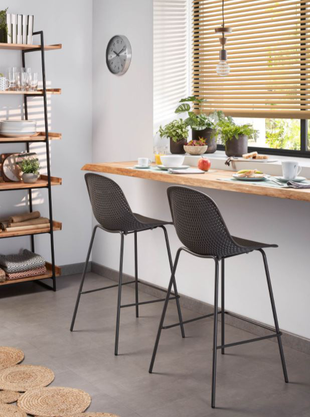 El asiento de este taburete es de plástico reciclable color gris y se apoya sobre una estructura de metal. Se trata de una pieza polivalente. Un taburete con infinitas posibilidades.